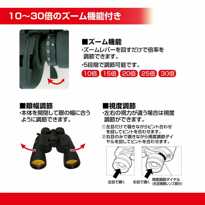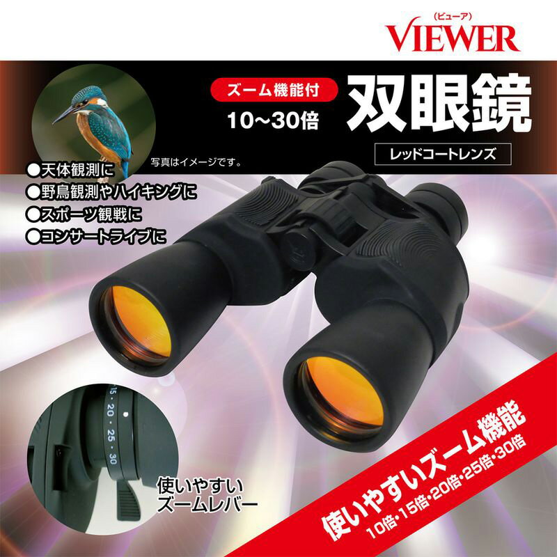 VIEWER ビューア ズーム機能付10〜30倍双眼鏡 MCO-49 ズーム双眼鏡 ケース・ストラップ付 倍率5段階 アウトドア スポーツ観戦 バードウォッチング