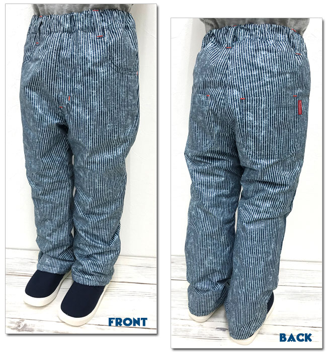 裏生地はトリコット起毛で暖かく、ウエストは総ゴムなのでお子様でも簡単に脱着できます。
